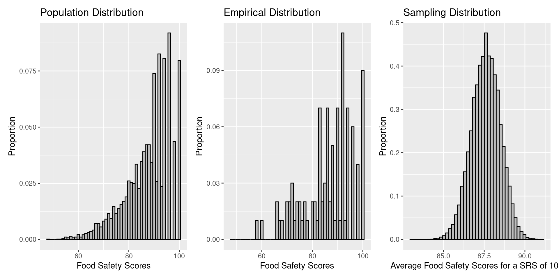An economist aims to estimate the average weekly cost of groceries per household in two cites: Oakland, CA (population ~400,000) and Fremont, CA (population ~200,000). Both of these populations of households are presumed to have a similar standard deviation of weekly grocery costs. The economist takes a simple random sample (without replacement) of 100 households from each city, records their costs, and computes a 95% confidence interval for the average weekly cost.