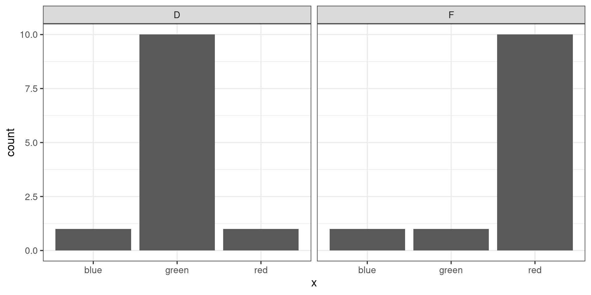 Which pair of plots would have the greatest chi-squared distance between them? (consider one of them the “observed” and the other the “expected”)